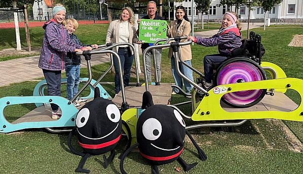 Vor gut drei Wochen wurde das gute Stück offiziell in den Spielplatz mit seinem Spielgeräte-Szenario integriert, und zwar im Rahmen der Europäischen Mobilitätswoche. In Abwandlung des bekannten Mottos "Einer für Alle, Alle für Einen" lautet die originelle Variante: „Mobilität für alle. Alle für Mobilität.“ Ein Satz, der so rund und ausgewogen klingt, dass man fast denkt, er sei auf der Wippe selbst entstanden.